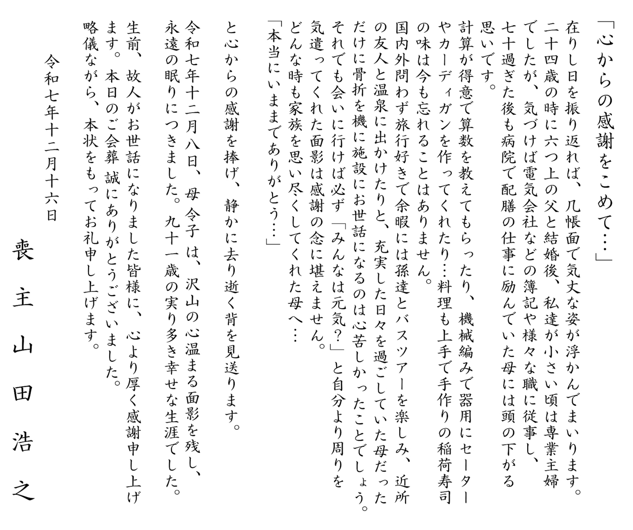 当日ご参列の叶わなかった皆様に 故人様をお偲びいただけますように