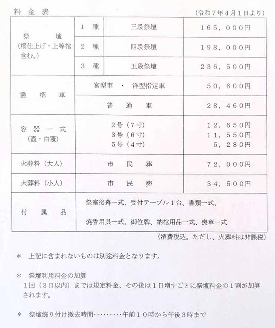 東久留米市民が葬儀を行う場合、費用を安くし、市民の経済的負担を少なくすることを目的として設けられた葬儀です。